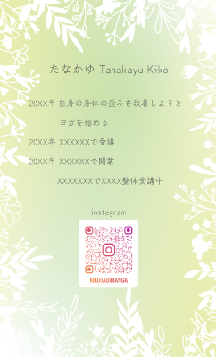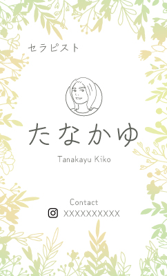 黄緑系のグラデーションと植物のシルエットを入れ、セラピストの「癒し」をイメージしています。