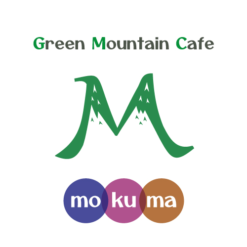 高原にあるカフェ・キッチンカーのロゴ。カップやケースなどに使用。屋号のイニシャルを高原の山のイメージにしました。