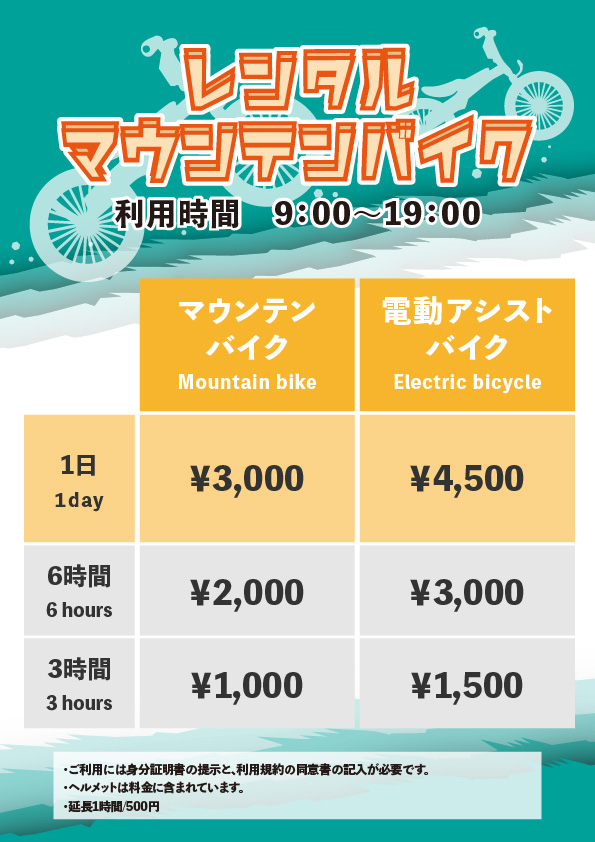 レンタルサイクルの料金表。